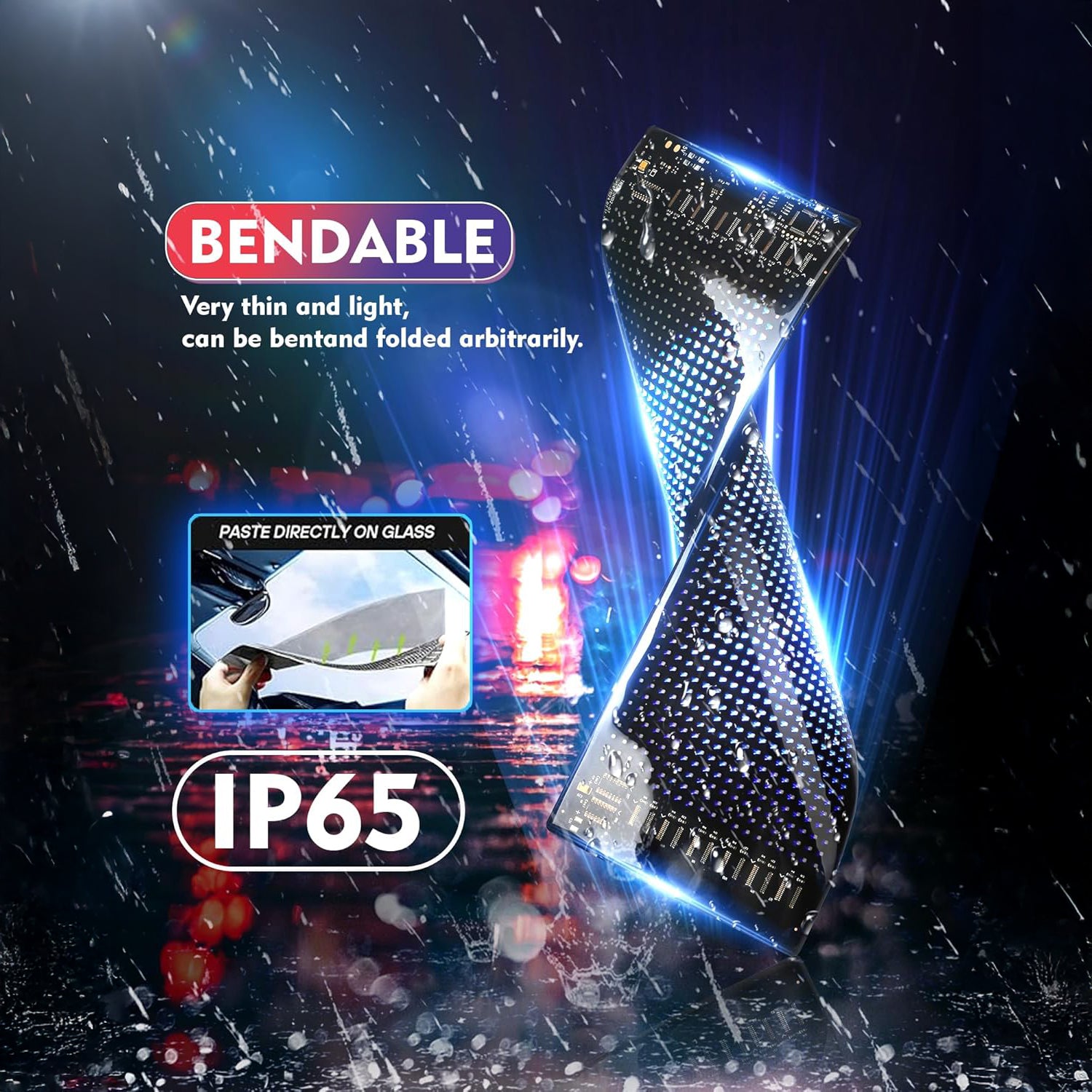 Designed for convenience, the flexible LED panel features a durable IP68 waterproof coating and a strong yet removable adhesive backing. The 64x16 pixel resolution ensures crisp visuals, while the included 13ft USB cable allows easy setup anywhere on your windshield or rear window — just plug in and glow.